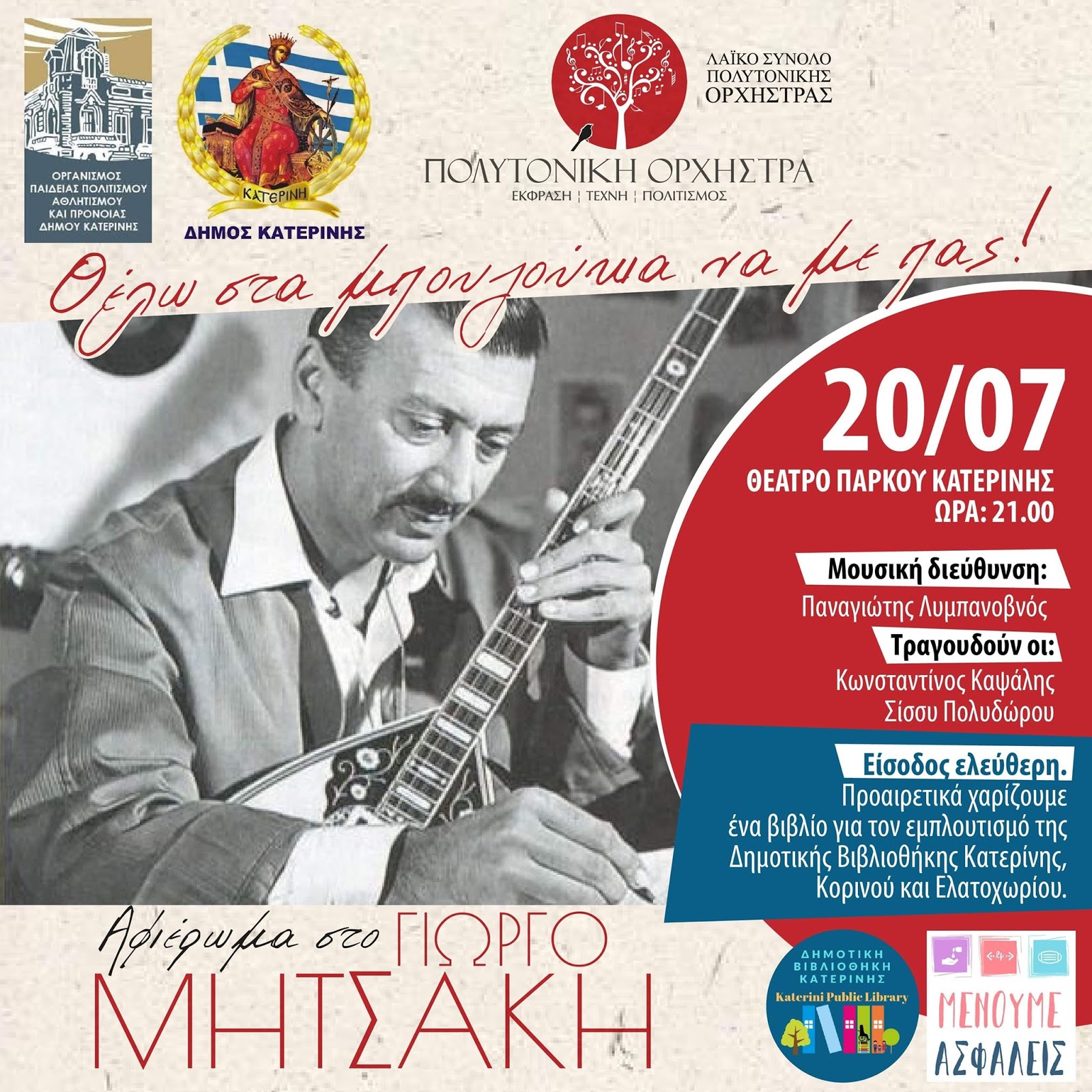Γιώργο Μητσάκη μας προσκαλούν ο Δήμος Κατερίνης και ο Οργανισμός Πολιτισμού