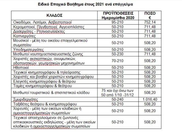 επαγγέλματα και έχουν τις προϋποθέσεις για τη λήψη του βοηθήματος έτους 2021,