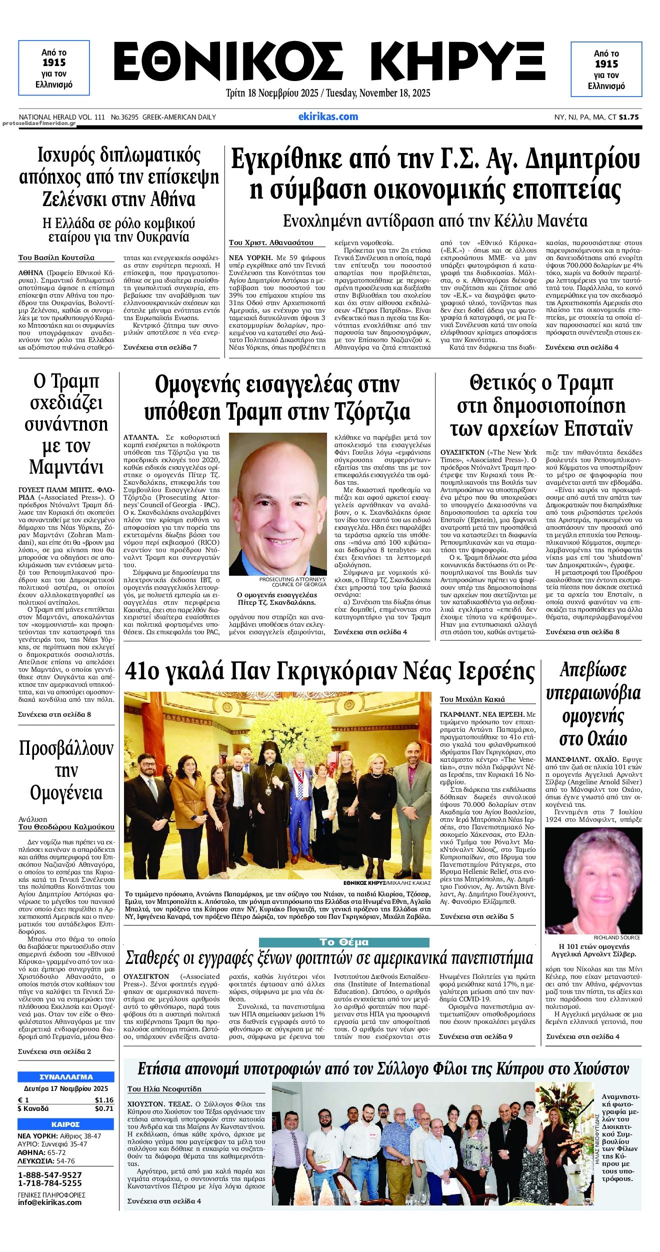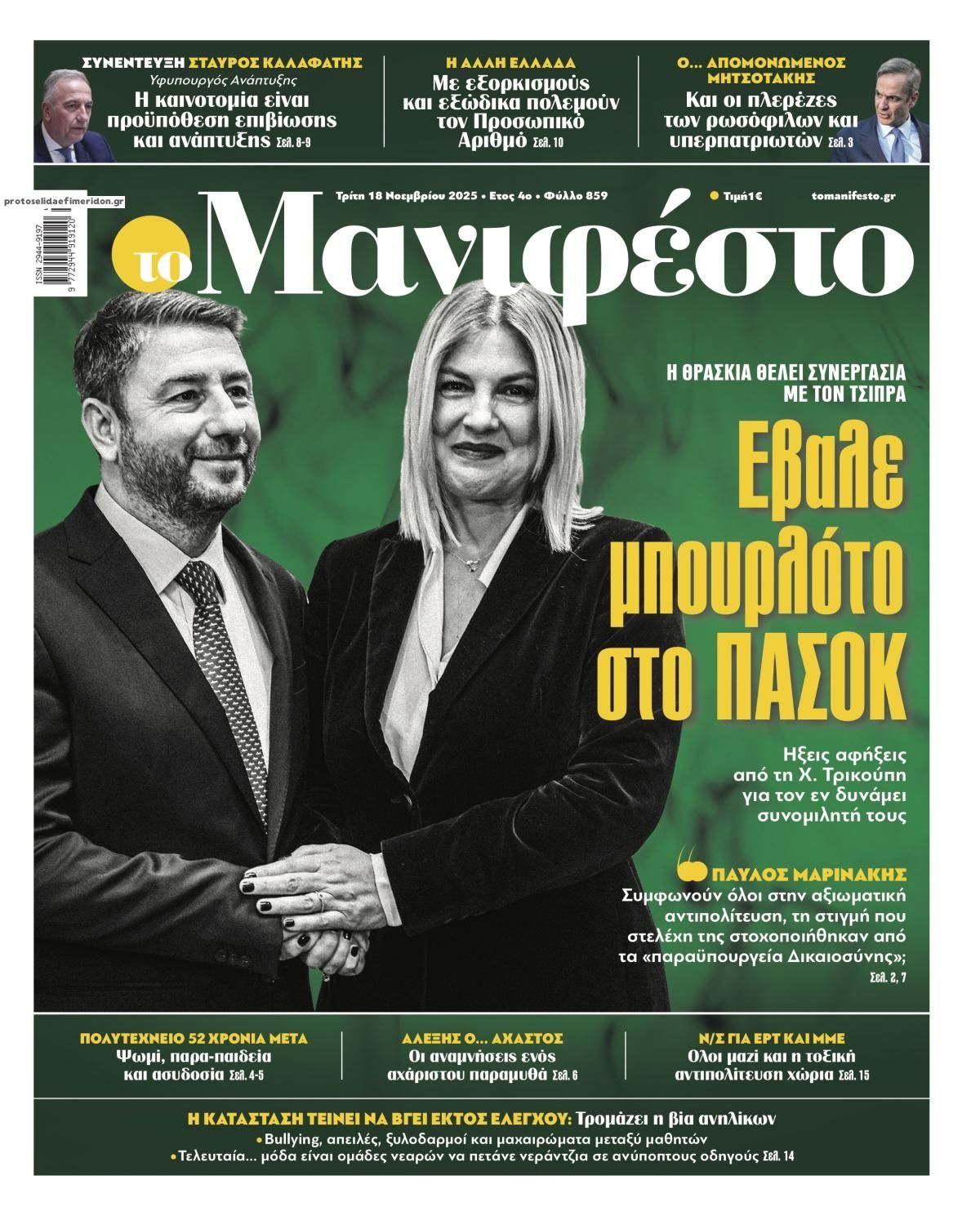 Οι πολιτικές εφημερίδες 18/11/2025