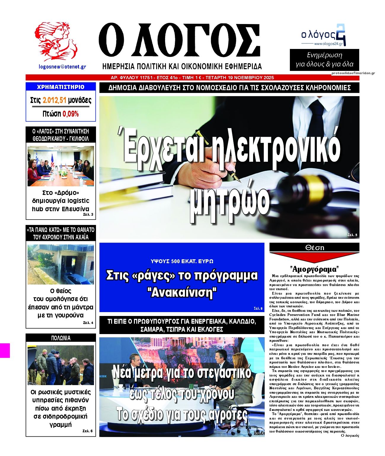 Διαβάστε τα σημερινά πρωτοσέλιδα από τις