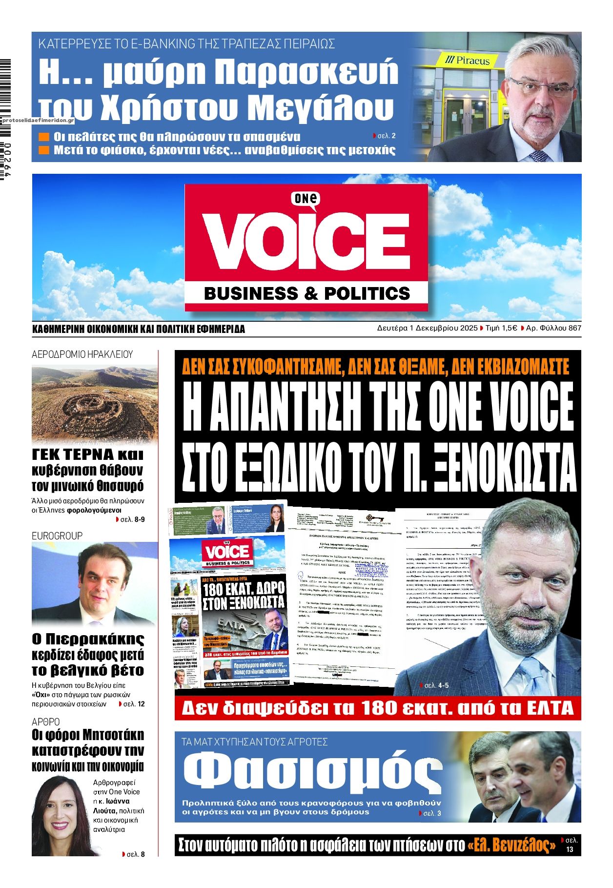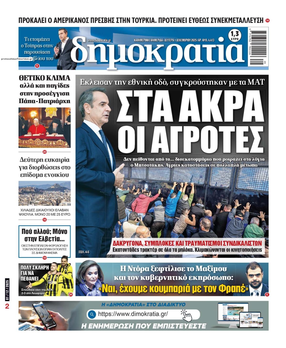 Οι πολιτικές εφημερίδες 1/12/2025