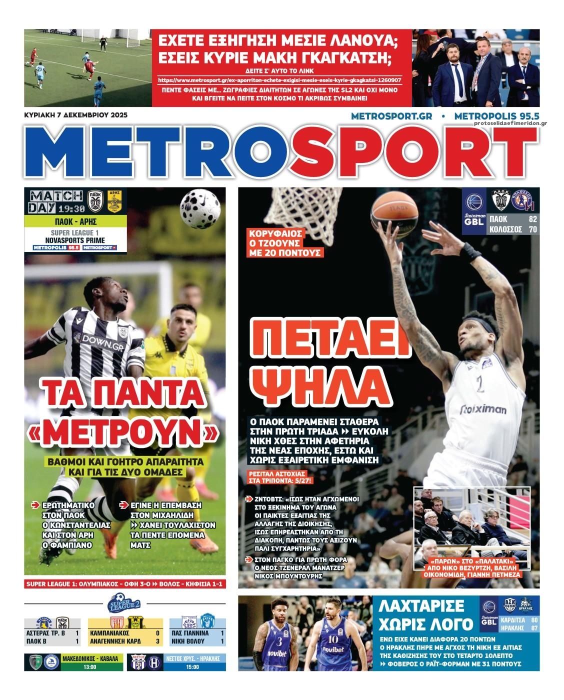 Οι αθλητικές εφημερίδες 7/12/2025
